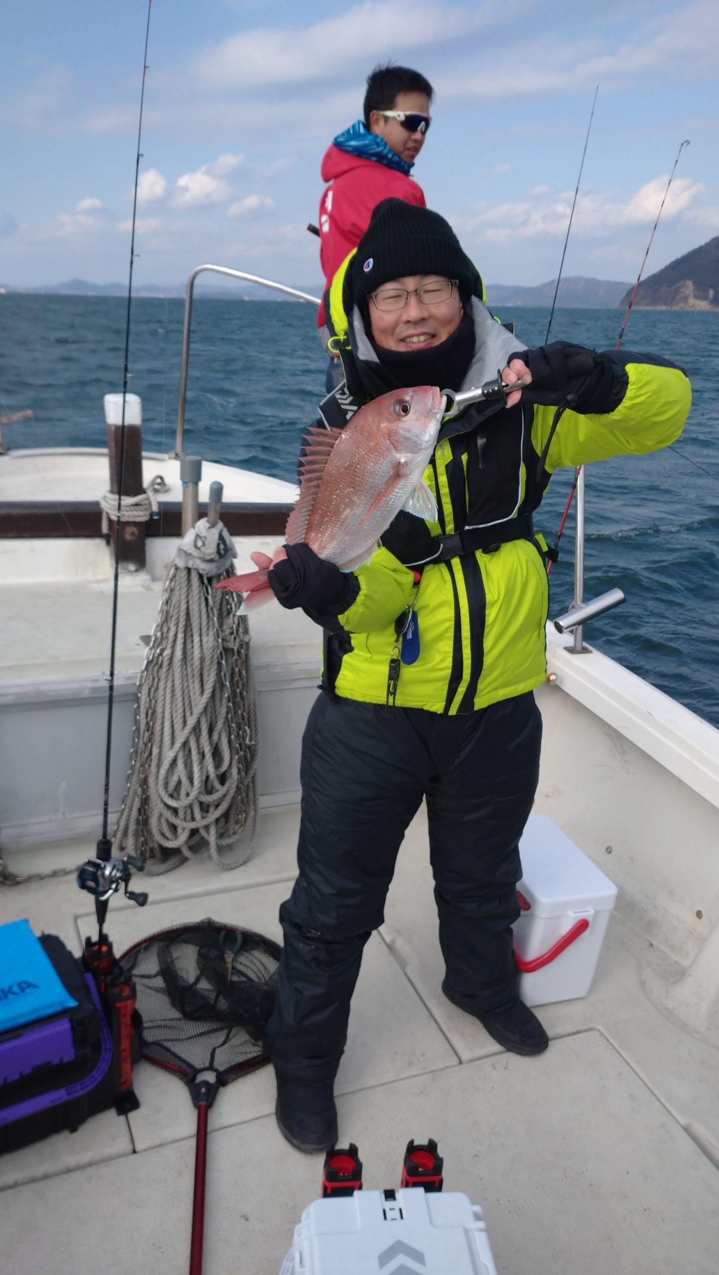 さて、新年初タイラバで出撃!高校生も初船釣りに来ていただき楽しんでいただきましたが、11時ごろから風が強くなり早めに帰港いたしました。