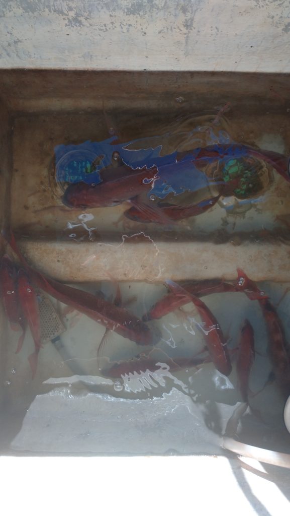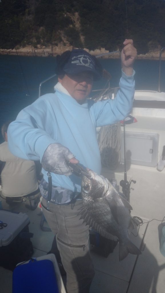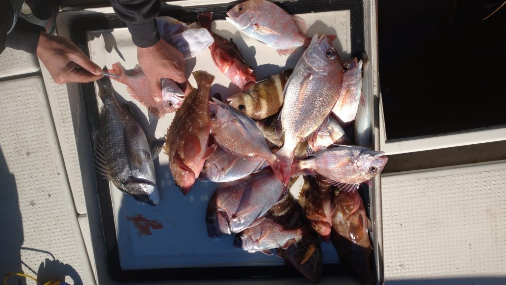 今日は活エビを使ってのエビラバでスタート、前半は30cm前後の鯛がポロポロ、潮が変わってからは大きいのが混じりながらポロポロと釣れ、鯛・アコウ・ワニゴチ・チヌ等が来てくれました。 大きな鯛は54cm。小さいサイズはリリースありがとうございました