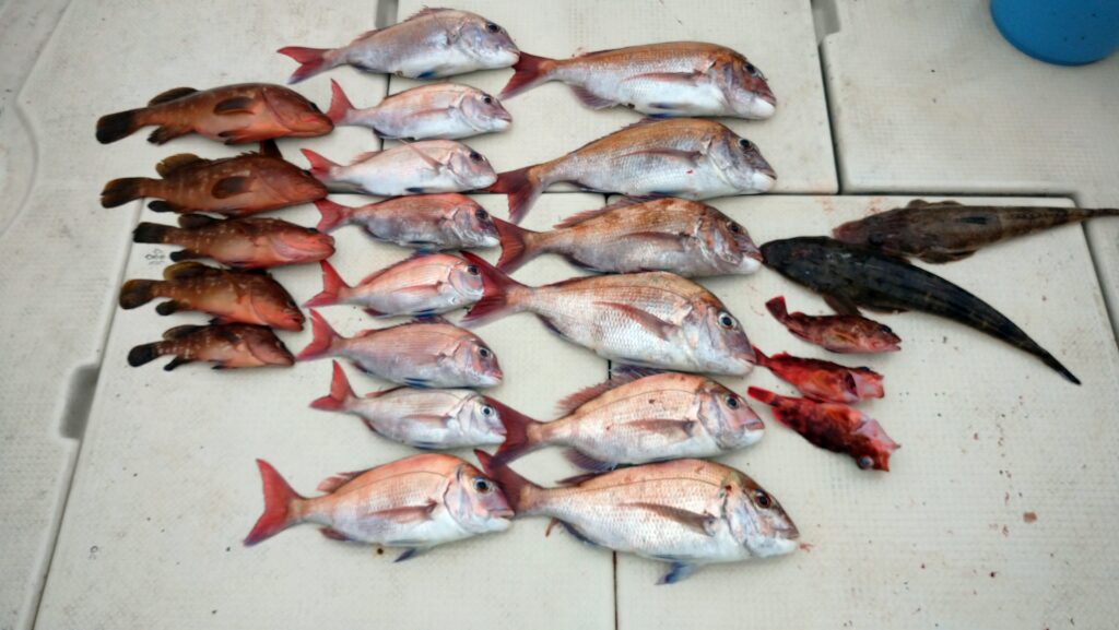 潮も動き出したのでターゲットを鯛に切り替えたがポロポロ。でもたまにダブル・トリプルヒット